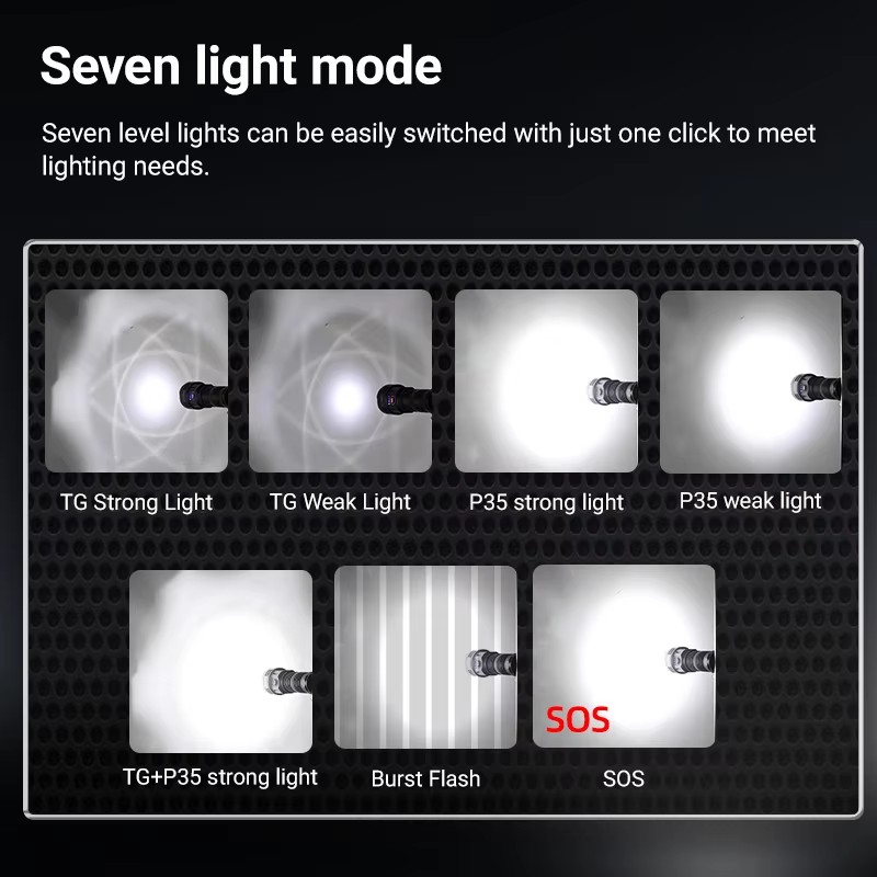 • Sju ljuslägen: Laser hög/låg, floodlight hög/låg, båda ljusen samtidigt, blinkande och SOS-läge.