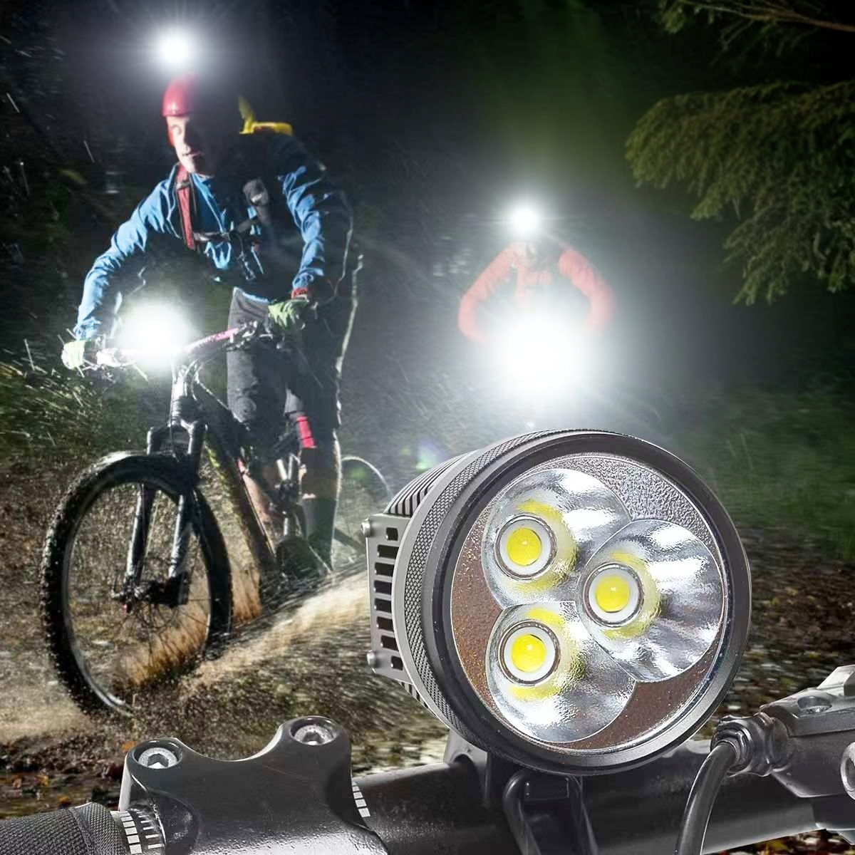 Pannlampans batteri placeras bekvämt på ryggen i en sele/väska för maximal komfort. Vid cykling fästs lamphuvudet på styret, medan batteriet enkelt fästs på ramen för stabil och smidig användning.