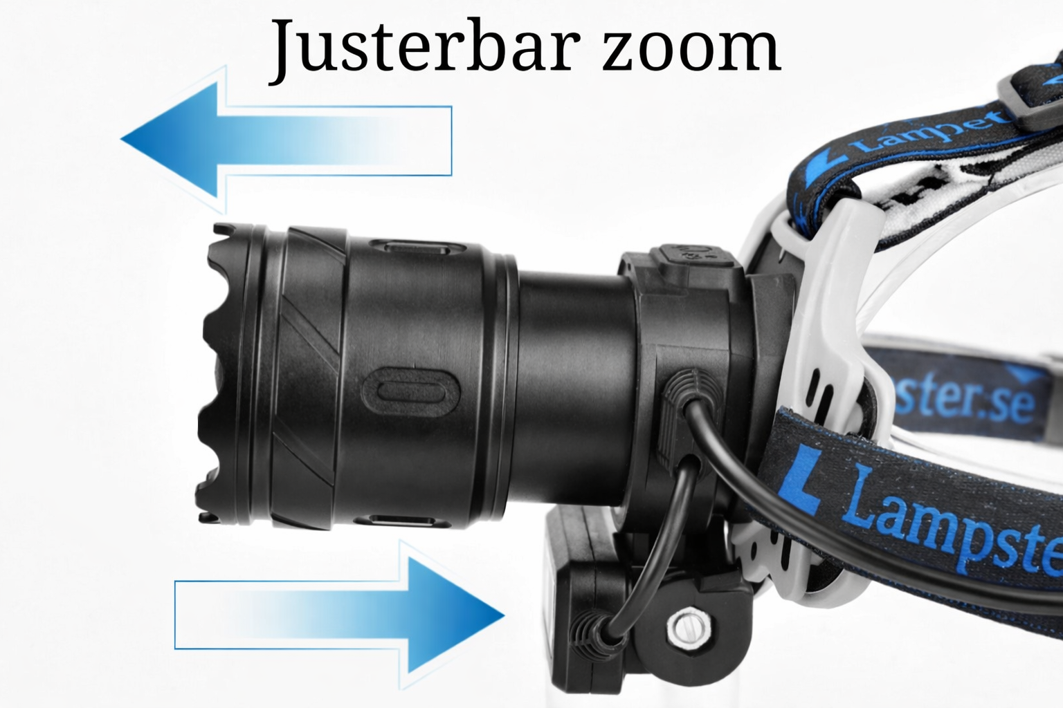 Professionell LED-pannlampa på 5200 LM (max 8800 LM) med COB-lampa nedantill. Lyser över 600 meters distans, och ger ett extra brett ljusfält. Uppladdningsbar med USB snabbladdning (batterier och kabel medföljer). Utmärkt steglös zoom som justeras från brett ljusfält till långdistansbelysning.